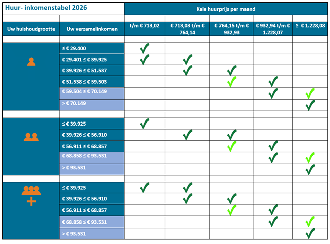 De overheid wil dat u een woning huurt die bij uw inkomen past. Daarom zijn er regels. Deze regels vertellen u en de verhuurders wat de maximale huurprijs is die u mag huren. Dit hangt af van uw inkomen en huishoudgrootte. Dit heet 'passend toewijzen'.