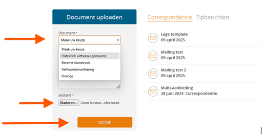 Selecteer het soort document, kies bladeren om het document te uploaden en klik op opslaan.